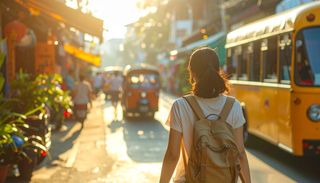 スリランカの多くの都市や町では、日中に商業活動と生活動線が集中しています。店舗、市場、公共交通が同時に稼働するため、道路状況、人の流れ、利用できる施設を一度に確認できます。
