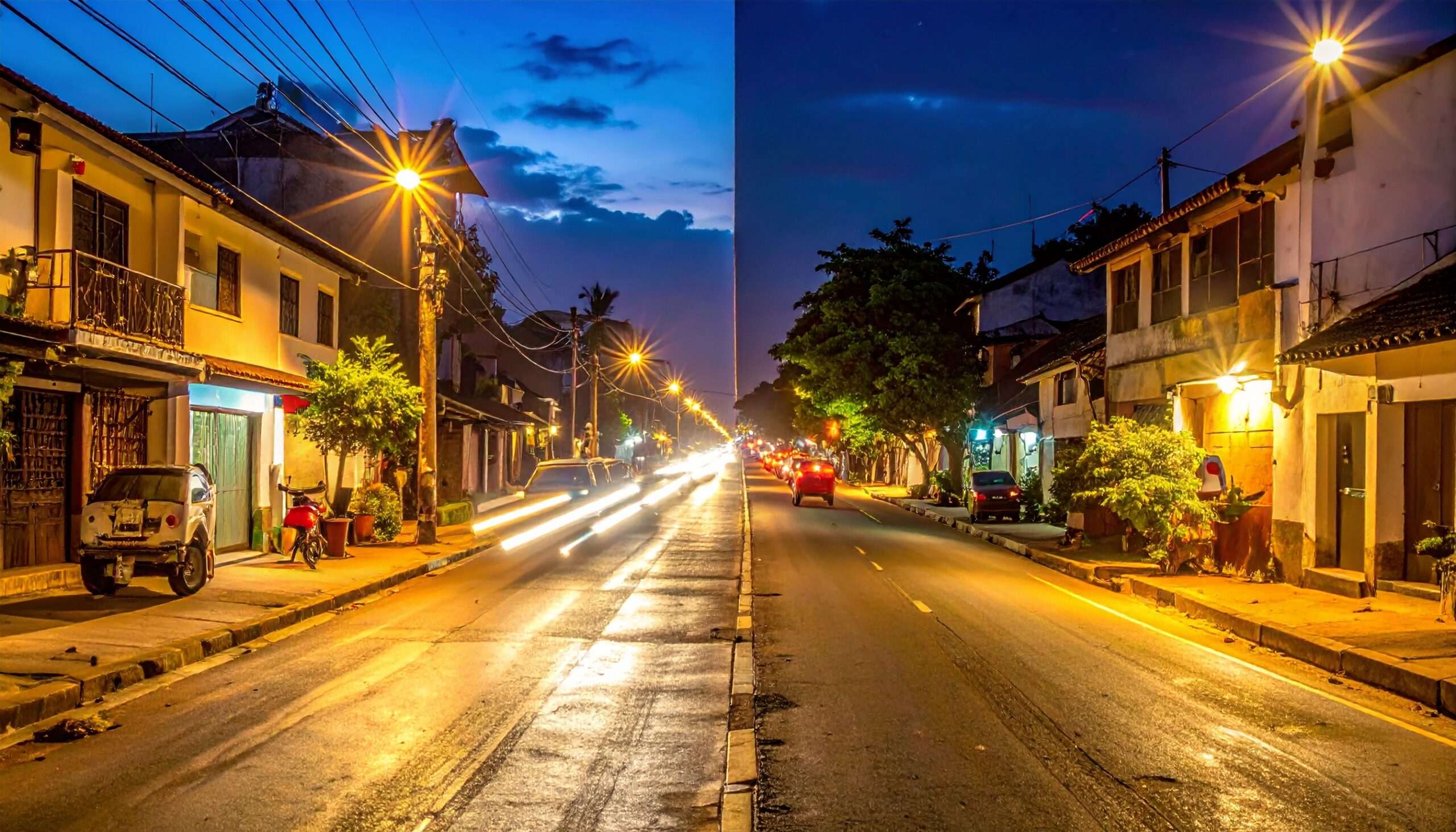 スリランカでは街灯がない場所も多く、夜になると真っ暗になってしまう道があります。足元と安全には十分注意が必要です。