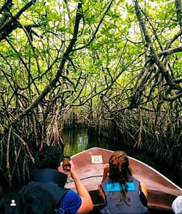 昼食 マングローブの木の下で食べます。